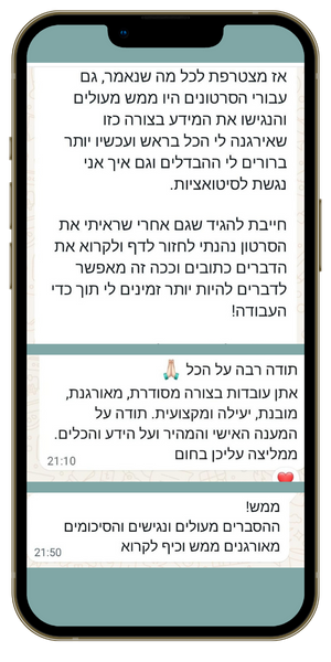 ליווי צמוד בקבוצת ווטסאפ סגורה